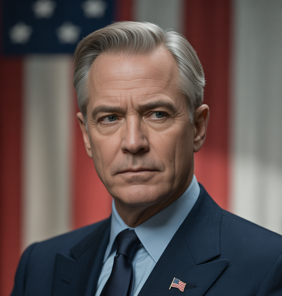 Blake Morrison is the perfectly polished face of American authoritarianism—a silver-haired strongman who rose from political dynasty to the presidency not through ideology, but through narrative control. In his mid-fifties, Morrison cuts an imposing figure with steel-grey eyes and clinical handsomeness, every gesture deliberate and calculated.